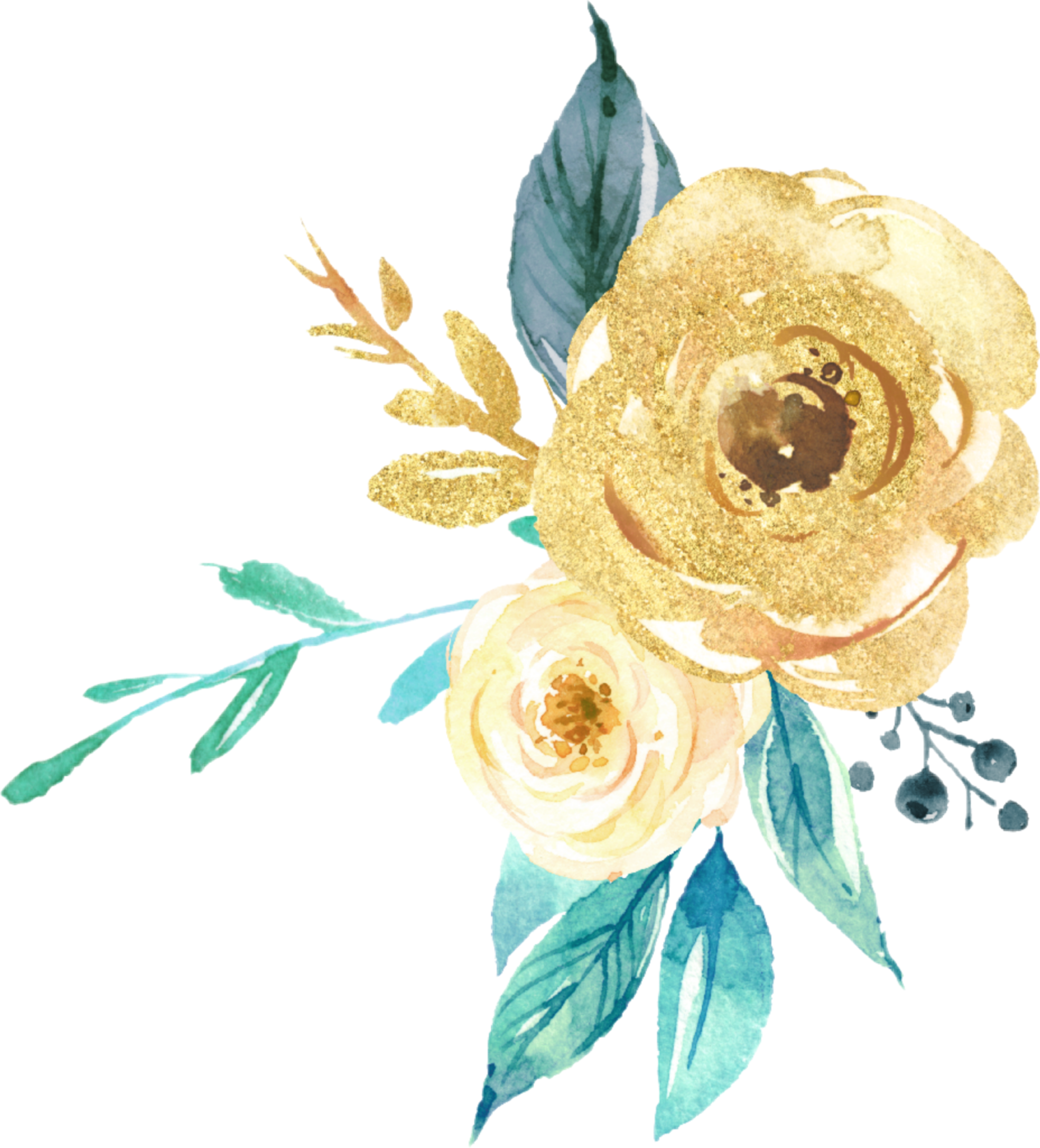 Download Free Freetoedit Gold Green Watercolor Glitter Flowers Flower PNG Image