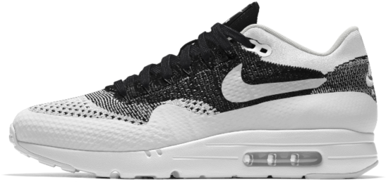 Download Free Nike Air Max 1 Ultra Flyknit Id White/Black/Grey Mens - Nike Air Max 1 Ultra Flyknit Id Men's Shoe PNG Image